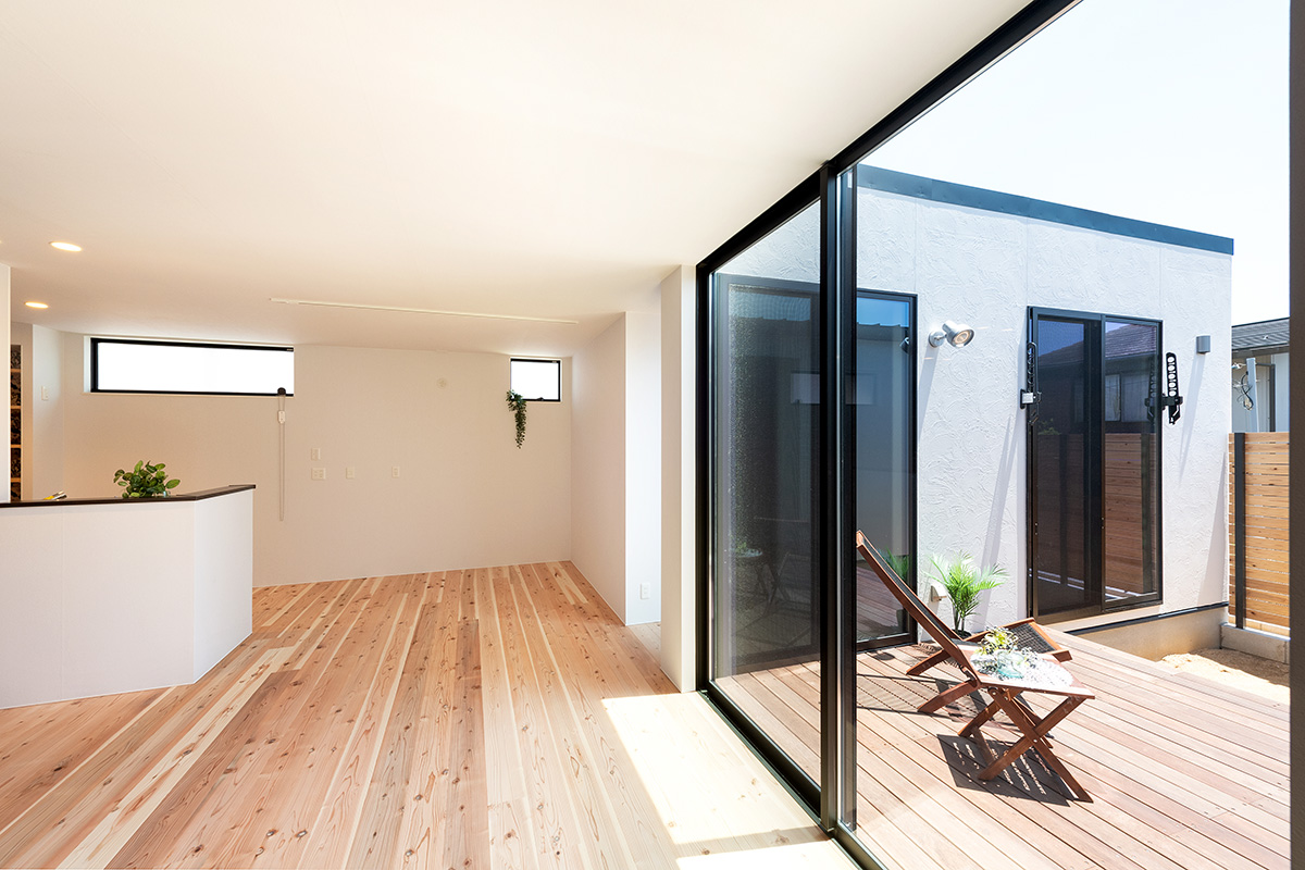 「中庭」をつくりそこにウッドデッキをつくれば、プライバシーが担保されているため持て余すことなくふんだんに使うことが出来ます。